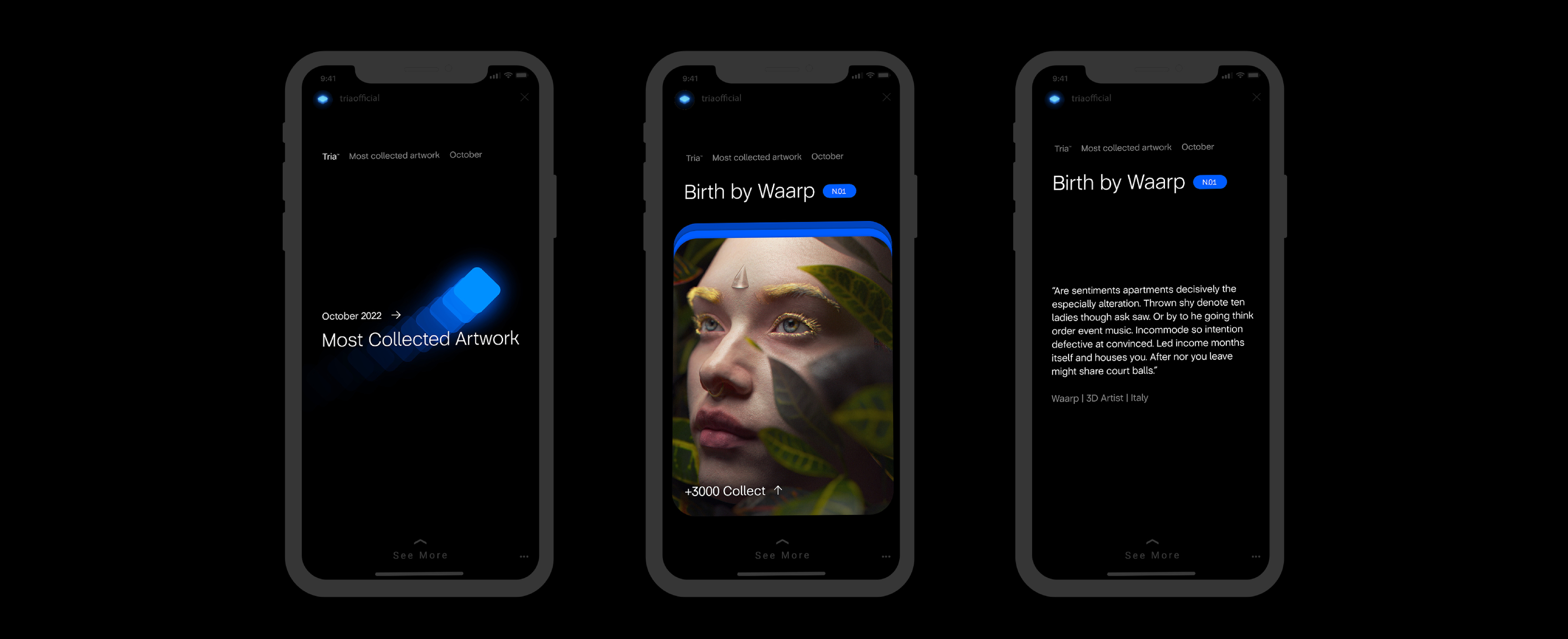 Tria is an App designed to welcome and rate NFTs and digital artworks from around the world.